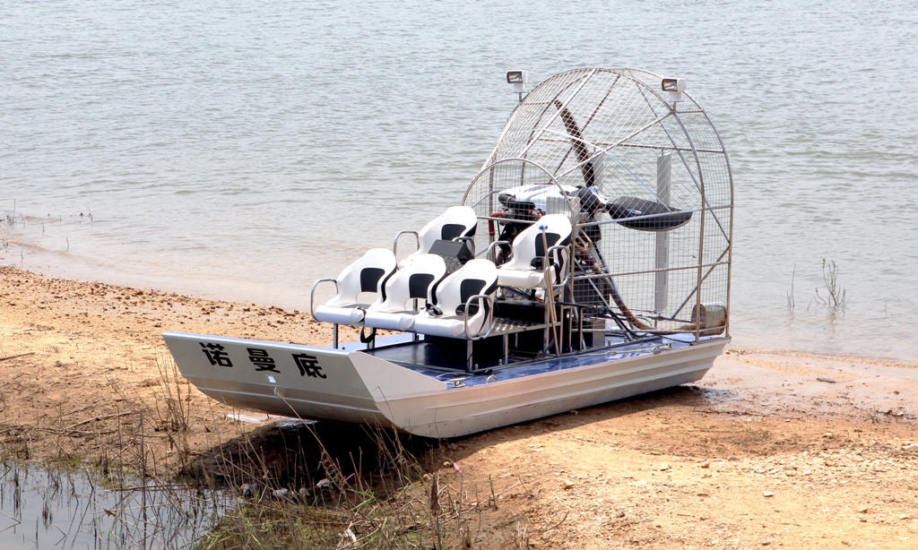 船底板它是用超高分子塑料或聚合物建造的,方向舵位于船尾部的空氣流中,操縱非常靈活,可以實現原地360度旋轉。氣動船應用于